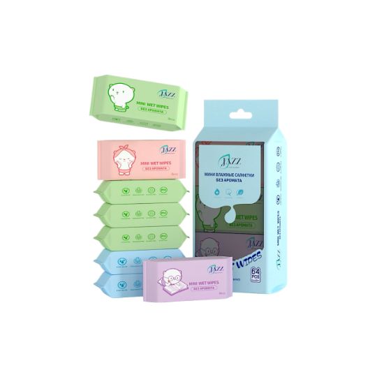 Мини влажные салфетки Jazz, Без запаха, 64 шт